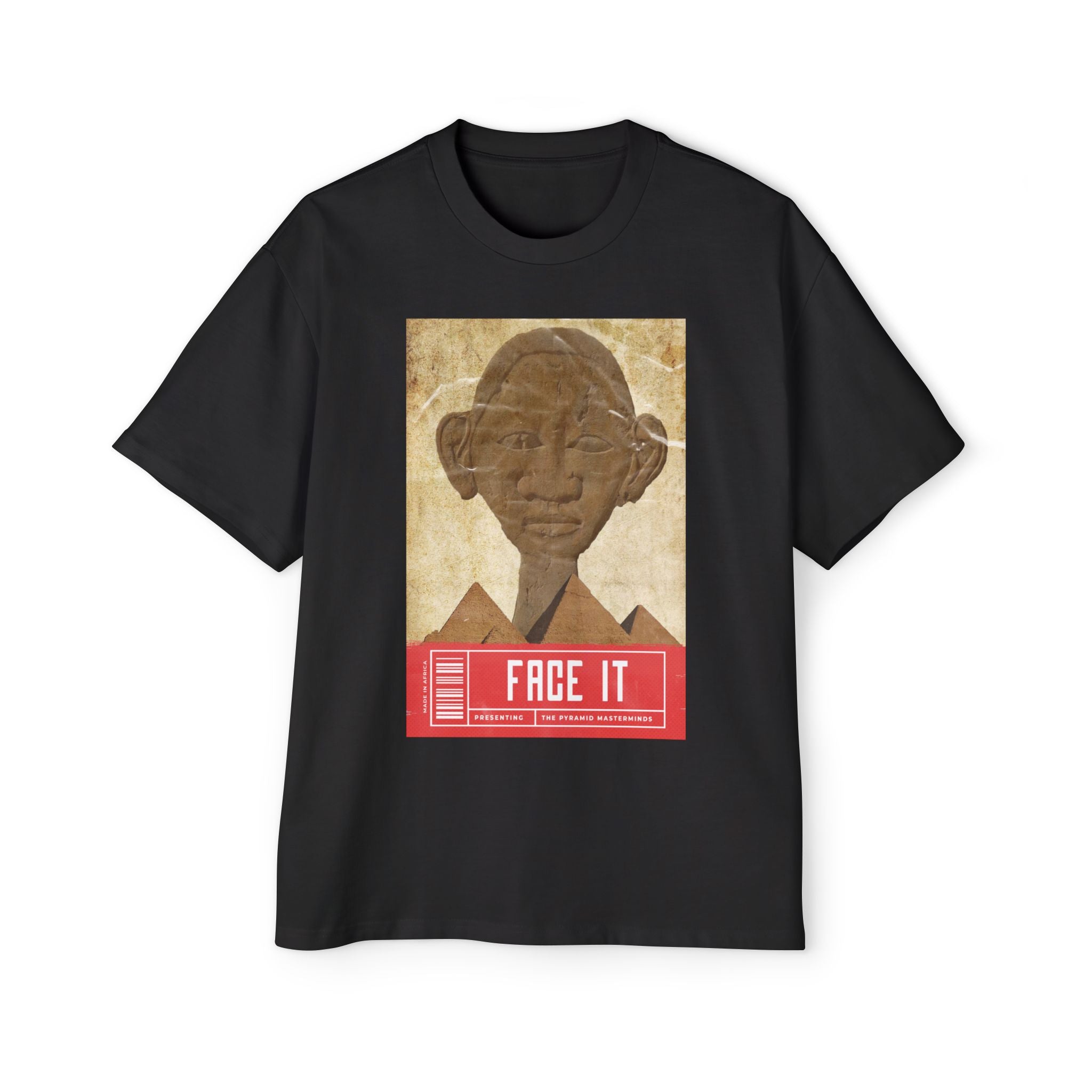Wear the Onyx KEMET Face of the Masterminds Oversized T-Shirt as a tribute to the enduring symbolism of identity, self-expression, and the rich cultural heritage of ancient Kemet.